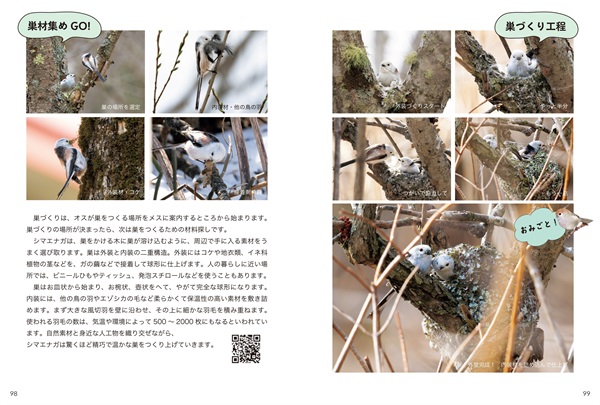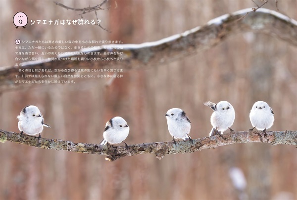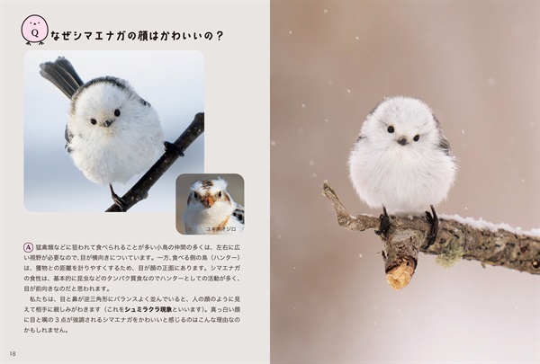 「首をかしげるポーズが多いのはなぜ?」「どうして冬モフモフなの?」——。大人気シマエナガのかわいさの秘密を、いちばん近くで見続けている著者が解き明かす。「ズアカエナガ」「チバエナガ」など国内外の仲間たちの素顔も紹介するたのしい「ずかん」。決定的瞬間をとらえた写真約210点収録、動画QR付き。
