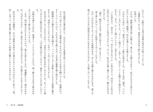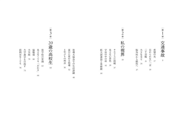 私が自分の人生をあきらめなかったように、誰かを励ます存在になりたい——。交通事故により15歳で視覚を失った一人の女性が、ハンディを乗り越え研究の道を切り開くまでの壮絶な半生をつづる。暗闇に差す一筋の光を希望に変える可能性の物語。