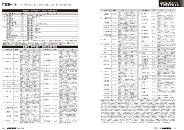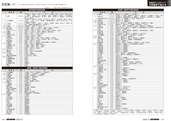 P148-151「医・歯・薬・看・獣医系進学者実数と大学名」ランキング表に誤りがありました。お詫びして訂正します。正しいランキング表はこちらでご確認願います。