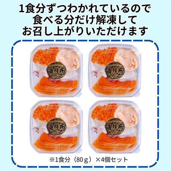 ミニ海鮮丼 80g×4個 (いくら醤油漬10g、蟹とろ30g、水タコボイルスライス10g×2枚、サーモンスライス10g×2枚)