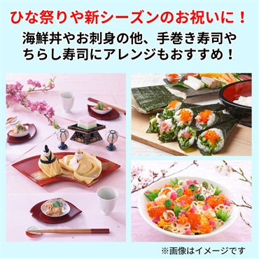 【いくら醤油漬】鮭卵(北海道羅臼町産)、粉末水飴、醤油、みりん、酒、鰹節エキス、食塩、酵母エキス、昆布だし、(一部に小麦・いくら・大豆を含む) 【蟹とろ】オオズワイガニ(北海道産)、食用植物油脂、カニエキス、粉末水飴、動植物蛋白加水分解物、醤油、胡椒/増粘多糖類、pH調整剤、トレハロース、調味料(アミノ酸等)、香料、酸化防止剤(V.C,トコフェロール)、(一部に小麦・かに・大豆・ゼラチンを含む) 【ボイルたこスライス】水たこ(北海道産)、食塩 【サーモン】アトランテックサーモン(養殖・ノルウエー産)