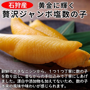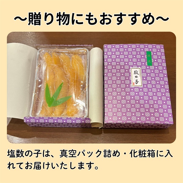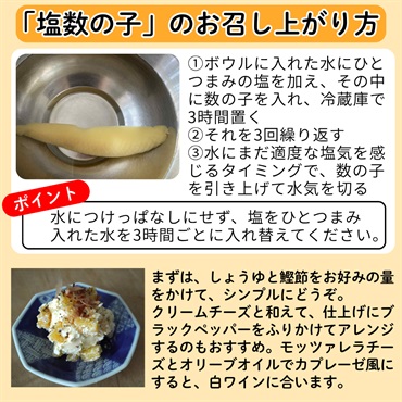 ・塩数の子 500g(特大サイズ約10~12本) ・糠ニシン 中辛大サイズ×2匹 辛口昔漬け大サイズ×1匹
