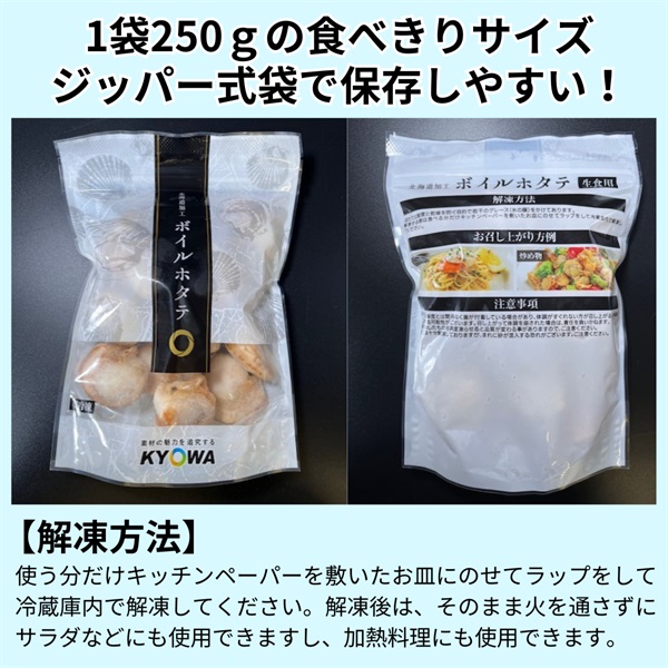 北海道噴火湾産 冷凍ボイルホタテ 250g×3袋