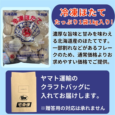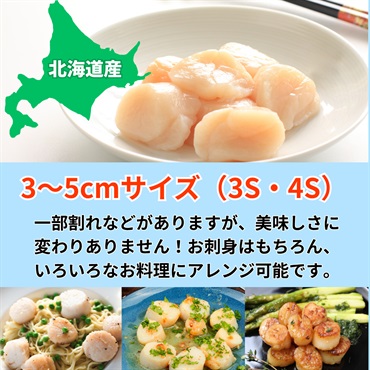 北海道産 刺身用ほたて貝柱 1kg(フレーク/3~5cmサイズ)