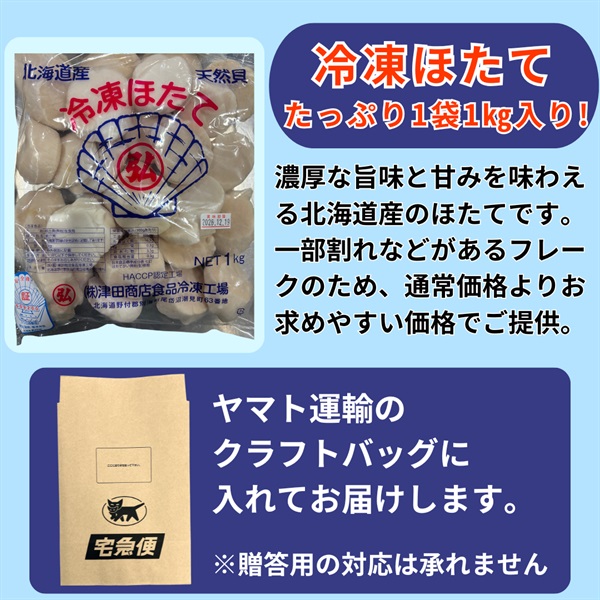 北海道産 刺身用ほたて貝柱 2kg(フレーク/3~5cmサイズ)